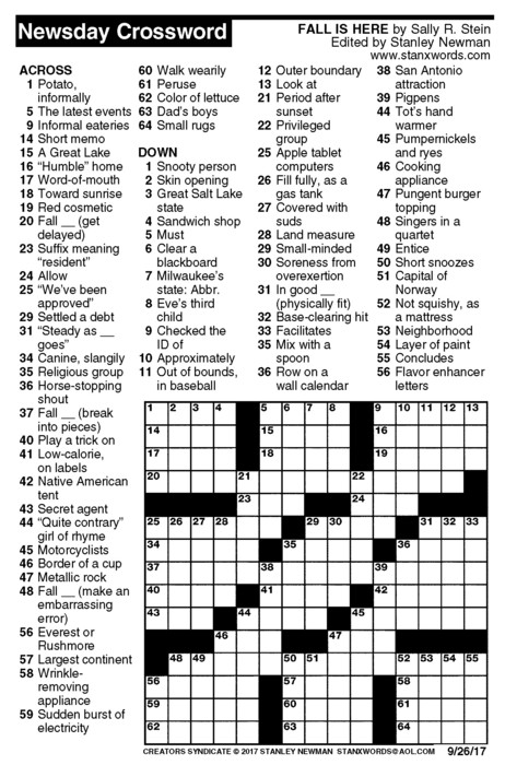 Newsday Crossword Puzzle for Sep 26, 2017
