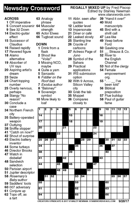 Newsday Crossword Puzzle for Sep 28, 2017