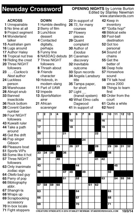 Newsday Crossword Puzzle for Oct 03, 2014