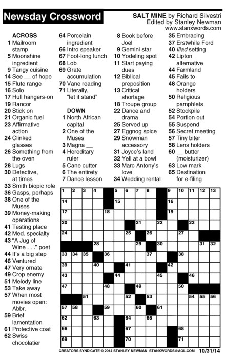Newsday Crossword Puzzle for Oct 31, 2014