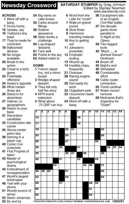 Newsday Crossword Puzzle for Oct 23, 2021
