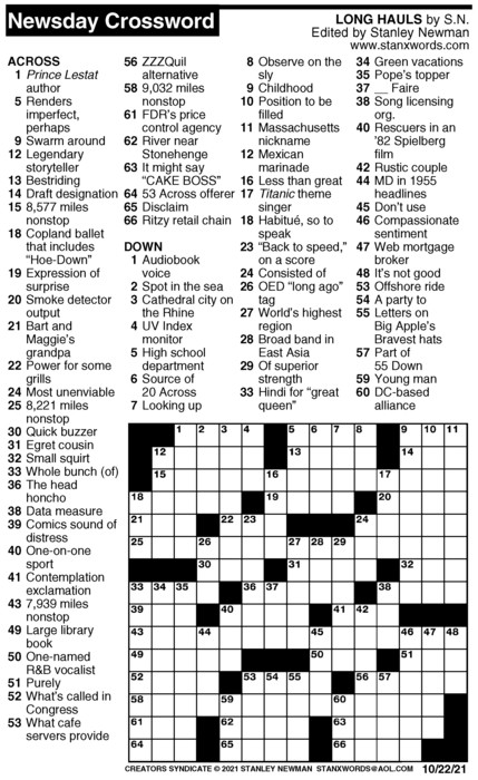 Newsday Crossword Puzzle for Oct 22, 2021