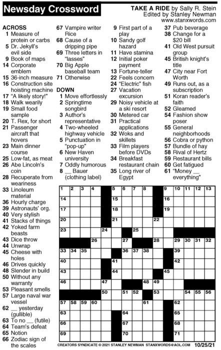 Newsday Crossword Puzzle for Oct 25, 2021