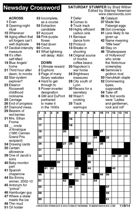 Newsday Crossword Puzzle for Nov 08, 2014