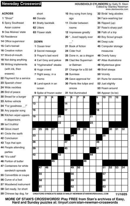 Newsday Crossword Puzzle for Nov 10, 2025