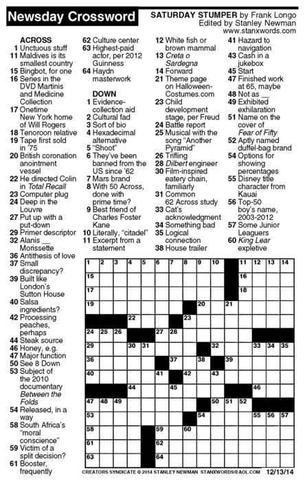 Newsday Crossword Puzzle for Dec 13, 2014