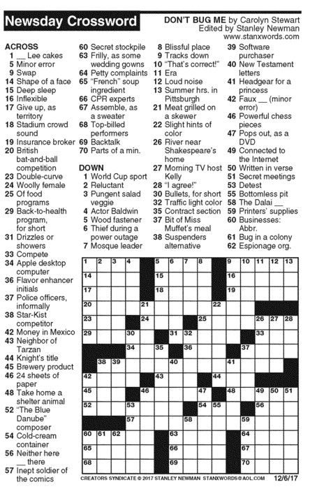 Newsday Crossword Puzzle for Dec 06, 2017