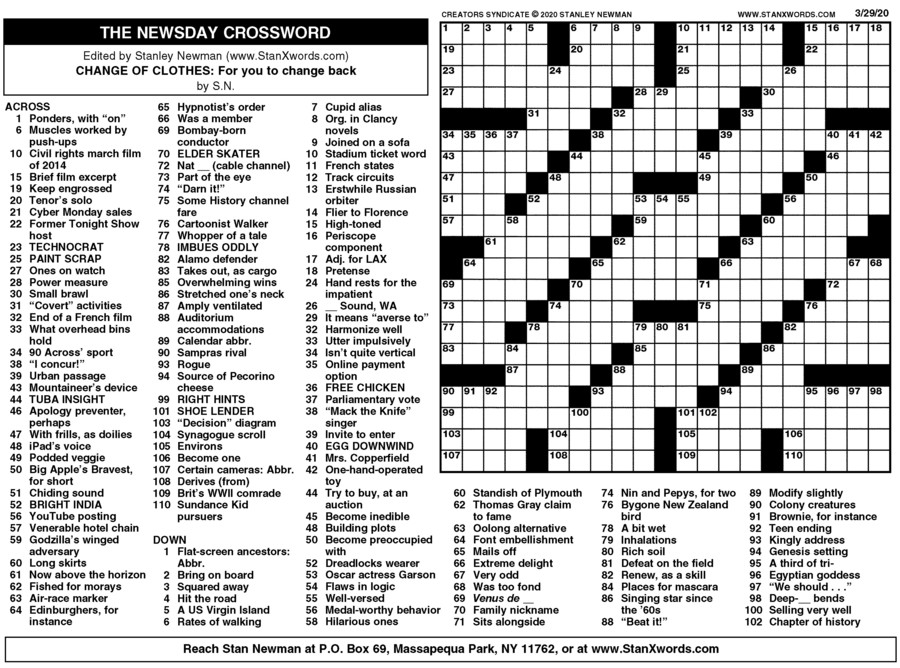 Newsday Crossword Sunday for Mar 29, 2020