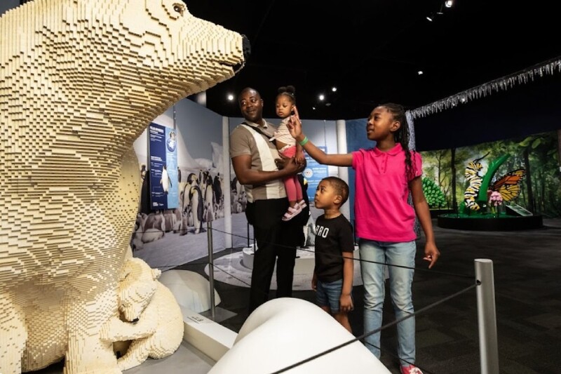 The exhibit tells a unique story about nature and biodiversity through different landscapes — Polar Brrrricks, Savanna Crossing, A Walk in the Woods, Our Planet, Our Own Backyard, Connect in the City and Ocean Odyssey, plus a Meet the Artist display — all brought to life beautifully through LEGO art.